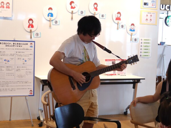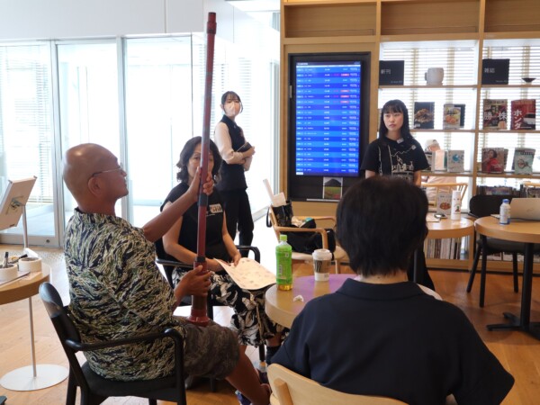 その後、改めて妄想屋台ってなんだろう?というところから、みなさんの興味についておしゃべり。今回はお話だけでなく、実際に気になるものを持参してお披露目してくれた方々もいました!手作りの楽器を持ってきた方やギターで即興の曲を披露してくれた方がいたり、盆点前を紹介してくれる方がいたりとおしゃべりだけでなく、見たり聞いたすることでよりアイデアがふくらみました。