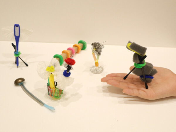 身の回りにある物を材料にして立体作品づくりに挑戦。