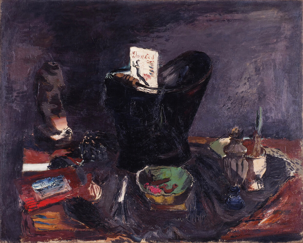 在学中から卒業後には、石膏像や髑髏など西洋絵画の伝統的な静物のモチーフにも挑戦しています。また、人物を中心とした絵画においても様々な静物を描きました。たとえば、身近な人物、アトリエの中のモデル、パリ遊学中に街で出会った人々などを表した絵画の中に、本や楽器、壺、果物などのモチーフが登場します。静物のみを描いた作品も、人物と静物をともに描いた作品も、いずれの場合もモチーフの色や形、配置などの工夫により、画面全体のコンポジションがつくり上げられています。